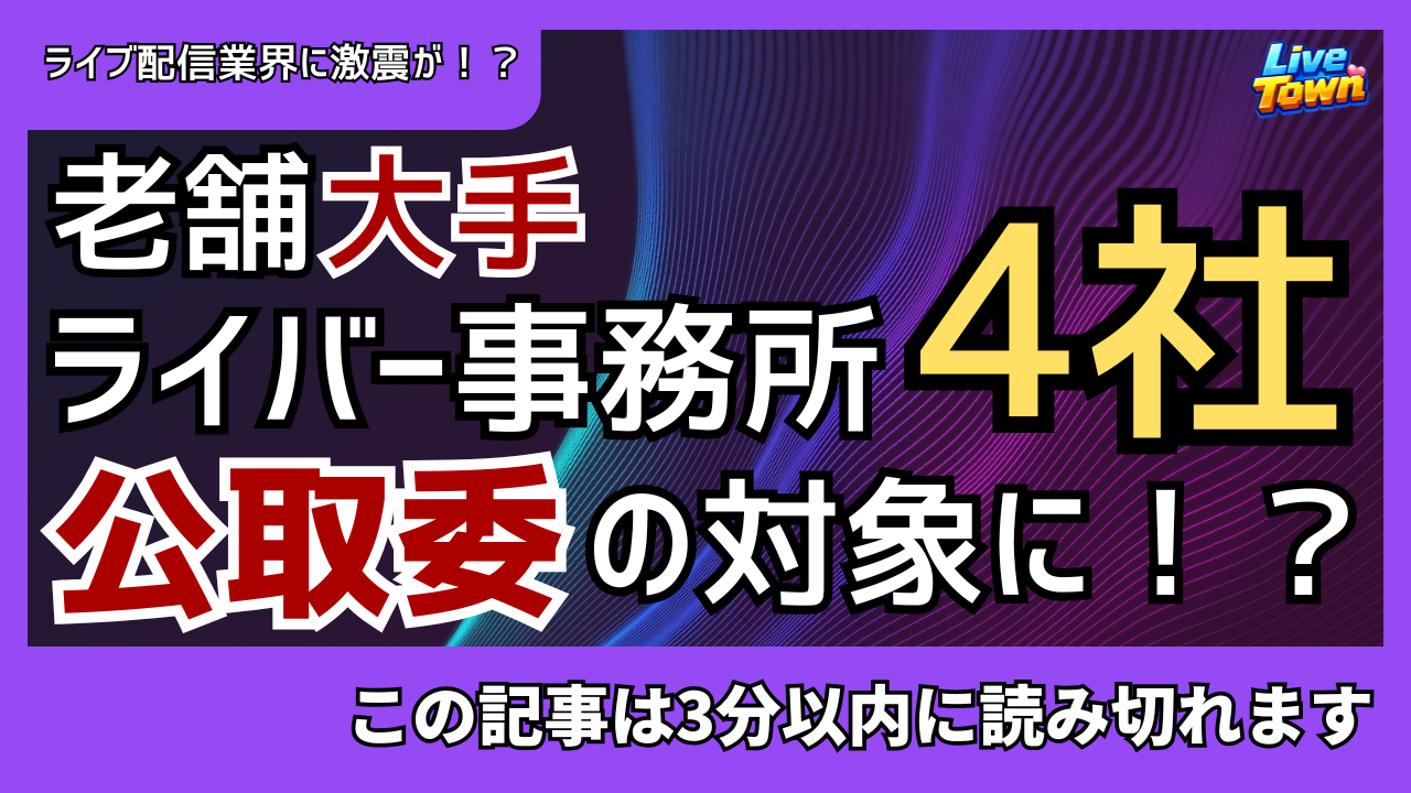 【衝撃】老舗大手ライバー事務所4社が公取委の対象になった、という事実